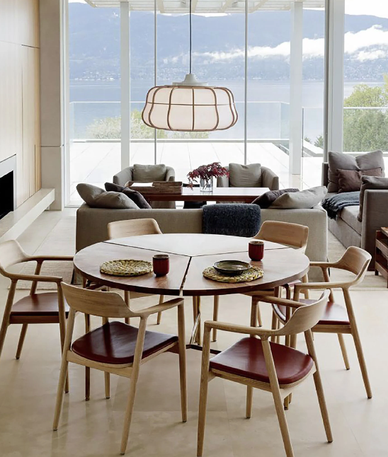 BassamFellows – CB-35 Circular Table. Runder Design-Tisch aus der CB-Kollektion von BassamFellows, entworfen von Craig Bassam im Jahr 2002. Der Tisch verfügt über eine hochwertig gearbeitete, radial segmentierte Tischplatte in Nussbaum, deren sternförmig verlaufende Maserung die handwerkliche Qualität und Materialität besonders hervorhebt. Das reduzierte, architektonische Metallgestell bildet einen klaren Kontrast zur warmen Holzoberfläche und sorgt gleichzeitig für Stabilität und Leichtigkeit. Die Formensprache ist zeitlos und typisch für BassamFellows: präzise, zurückhaltend und langlebig. Der Tisch eignet sich sowohl als exklusiver Esstisch wie auch als repräsentativer Meeting- oder Konferenztisch und stammt aus dem internationalen High-End-Designsegment.
