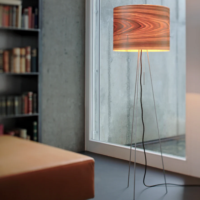 Die WS40 Stehleuchte von Wald-Haus, entworfen vom Designer Fries Zumbühl, verbindet warmes Holz mit einem leichten, eleganten Metallgestell. Der großzügige Holzschirm sorgt für ein sanftes, atmosphärisches Licht, das jeden Raum angenehm beleuchtet. Durch ihr minimalistisches und natürliches Design fügt sich die WS40 mühelos in moderne wie auch klassische Einrichtungen ein. Eine hochwertige, zeitlose Leuchte, die mit ihrer schlichten Form und warmen Ausstrahlung überzeugt.