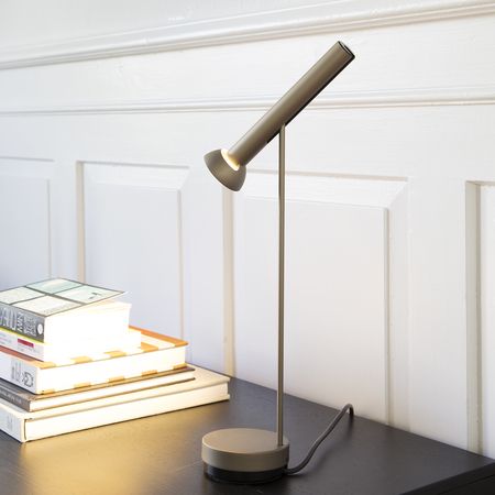 Die kleine Tischleuchte mit hoher Lichteffizienz eignet sich ideal zum Lesen auf einem Arbeitstisch oder als Akzentbeleuchtung auf einem Sideboard. Durch den kleinen Sockel ist sie sehr platzsparend und hat auch auf einem Nachttisch Platz.
